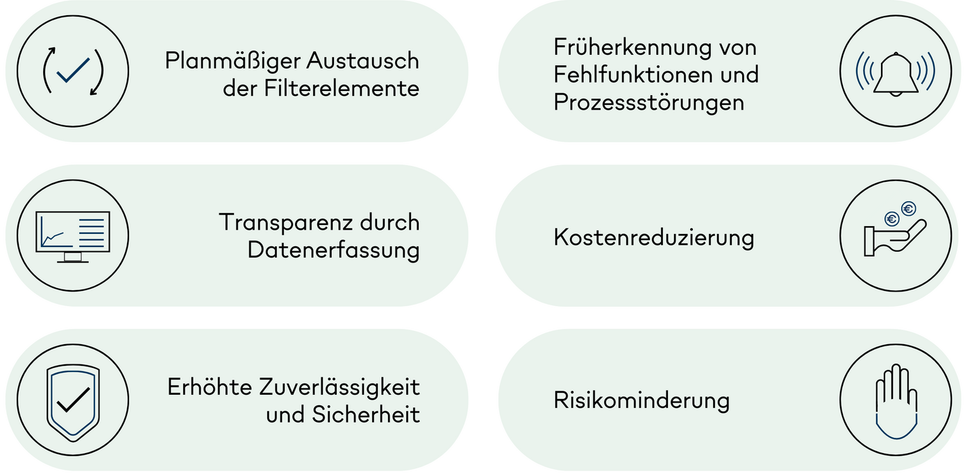 - Die Lebensdauer der Filterelemente auf deren Leistung anpassen